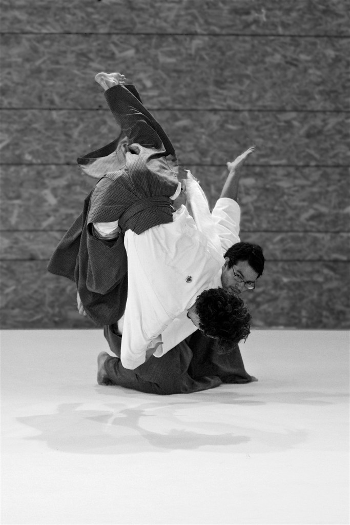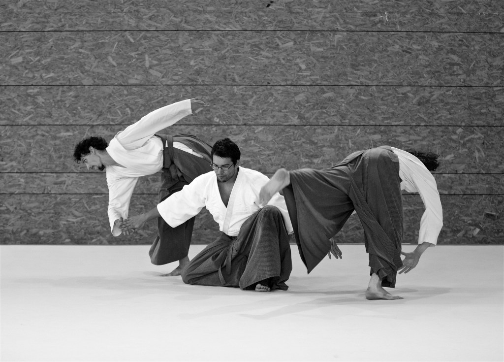 Kinomichi emerges from Aïkido, a traditional Japanese martial art, envisioned and developed by Masamichi Noro Sensei. Movements it relies on favour the circulation of energy and a careful development of the body. Though techniques used are the same as in Aïkido, emphasis is put on spiral movements and contact in an ample use of the space and it integrates the approach of somatic practices such as Feldenkrais, Anti-Gymnastics or Qigong for improved flexibility and a strengthened energy. These concepts are applied through contact with a partner, in a spirit of cooperation and mutual benefit. One can see it as a form of dynamic meditation through fluid movements.